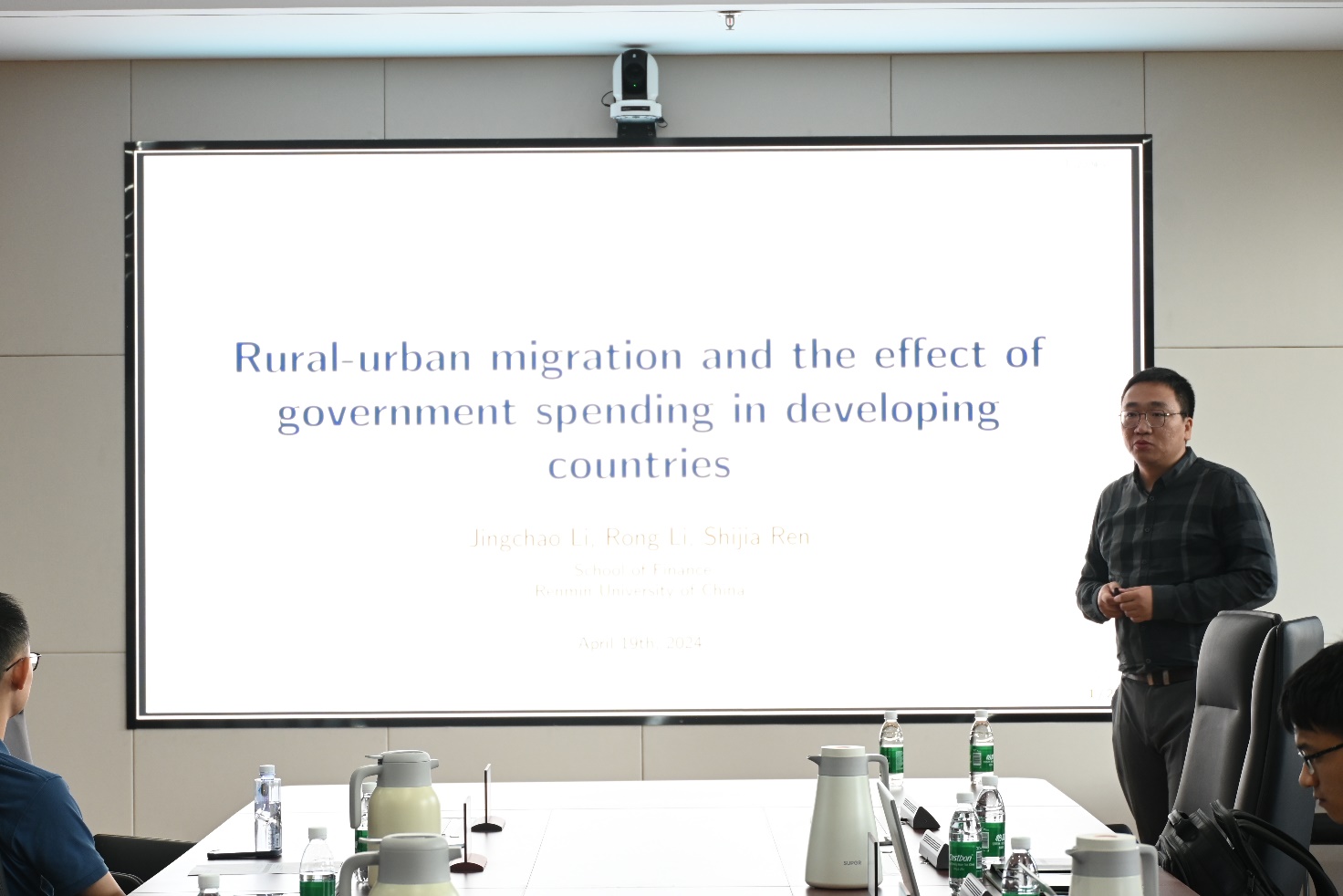 主题报告环节由3044am永利集团3044noc殷永昆和张仁斌主持。中国人民大学财政金融学院李戎作了主题为“Rural-urban migration and the effect of government spending in developing countries”的报告。首先,报告基于SVAR模型分析了发展中国家城乡迁移对政府支出的影响及原因,指出由于外国援助融资、政府支出效率低下、较低城乡偏见等外生因素的影响,发展中国家的政府支出乘数较小,且其财政政策呈现出明显的顺周期趋势。进一步,基于两地区DSGE模型,报告发现农村-城乡移民极大地提高了政府支出乘数,且随着政府支出的增加,农村-城乡迁移趋势将会减缓。