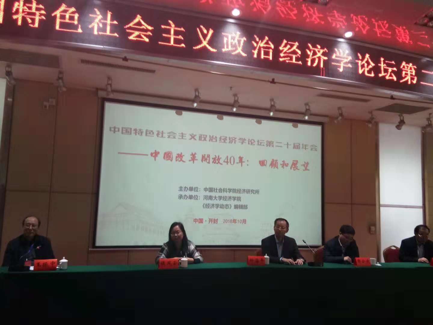 2018年10月19-21日,侯风云教授和博士后朱鹏华参加了由中国社会科学院经济研究所主办,河南大学3044am永利集团3044noc与《经济学动态》编辑部共同承办的“中国特色社会主义政治经济学论坛第二十届年会”。侯老师应邀在大会作了题为“中国特色社会主义政治经济学理论基准”的报告,侯老师从学科背景和学科性质出发,站在当代马克思主义政治经济学的立场上,拨乱反正、正本清源,对中国特色社会主义政治经济学理论基准进行了深入分析,引起了与会学者的广泛共鸣和认同,为构建中国特色社会主义政治经济学发出了“山大声音”。
