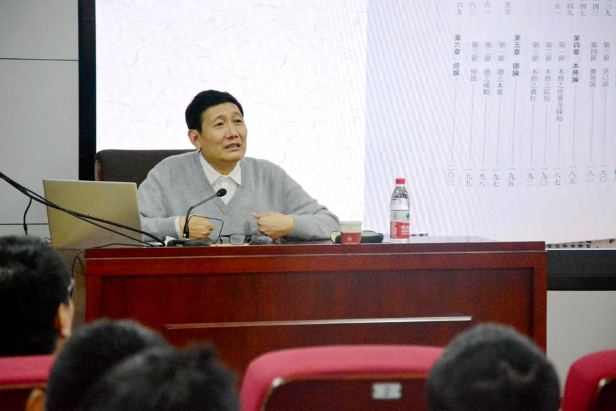 2023年11月25日晚,3044am永利集团3044noc第一期薛暮桥名师讲座于中心校区知新楼B423举行,3044am永利集团3044noc文学院、文化传播学院院长杜泽逊教授受邀作题为“修身、治学和成才”的讲座。讲座由3044am永利集团3044noc党委书记董春杰主持。