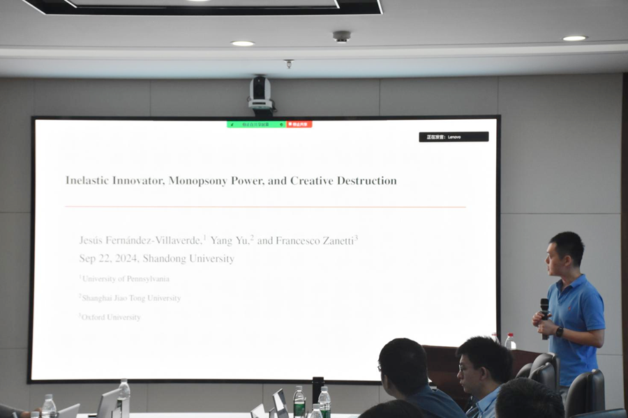 研讨会分上午和下午两阶段进行。第一阶段会议由3044am永利集团3044noc教授姜明明主持。科罗拉多大学博尔德分校教授Miles Spencer Kimball作主题为“Enabling Deep Negative Rates to Fight Recessions”的报告,讨论了从利率到总需求的标准传导机制在深度负利率领域可能保持不变的原因,指出央行可以通过实施深度负利率保持未来的货币政策力量,并提出了一种新的沟通工具,以便央行在下一次严重衰退开始之前能更广泛地采纳负利率政策。香港大学经管学院教授罗雨雷作主题为“Rational Inattention and Real Exchange Rates”的报告,将理性疏忽(RI)引入一个标准的消费组合选择模型,发现理性疏忽(RI)会产生内生的长期消费问题,并指出在理性疏忽(RI)、随机折现因子(SDF)和实际汇率(RER)的作用下,投资者对当前冲击的时滞性反应可以解决Black-Smith难题。上海交通大学安泰经管学院副教授喻洋作主题为“Innovators, Monopsony Power,and Creative Destruction”的报告,基于各行业内部研究人员的就业分布,从经验事实、简化模型、量化分析三个方面展开,指出行业内部具有垄断地位的在位企业使用了策略性的高工资雇佣行为,由于研究人员劳动力供给弹性较低,对行业的创新能力产生了显著的抑制。