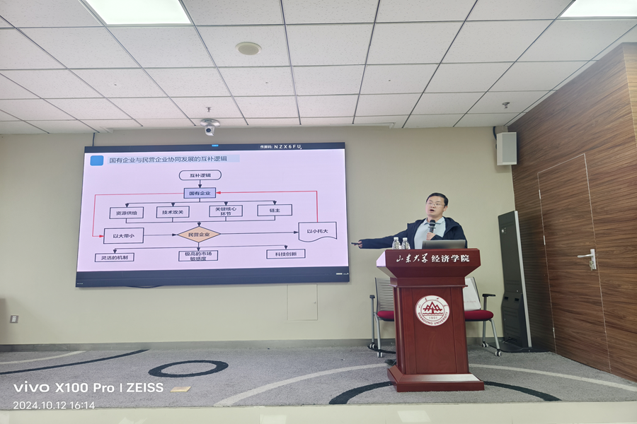 10月12日,3044am永利集团3044noc第二十期“经济理论与政策前沿”讲座于中心校区知新楼B215举行,中国经济体制改革研究会副研究员罗玉辉博士作主题为“国有企业与民营企业协调发展的政治经济学”的讲座。讲座由3044am永利集团3044noc经济系朱鹏华老师主持,学院部分师生参会。