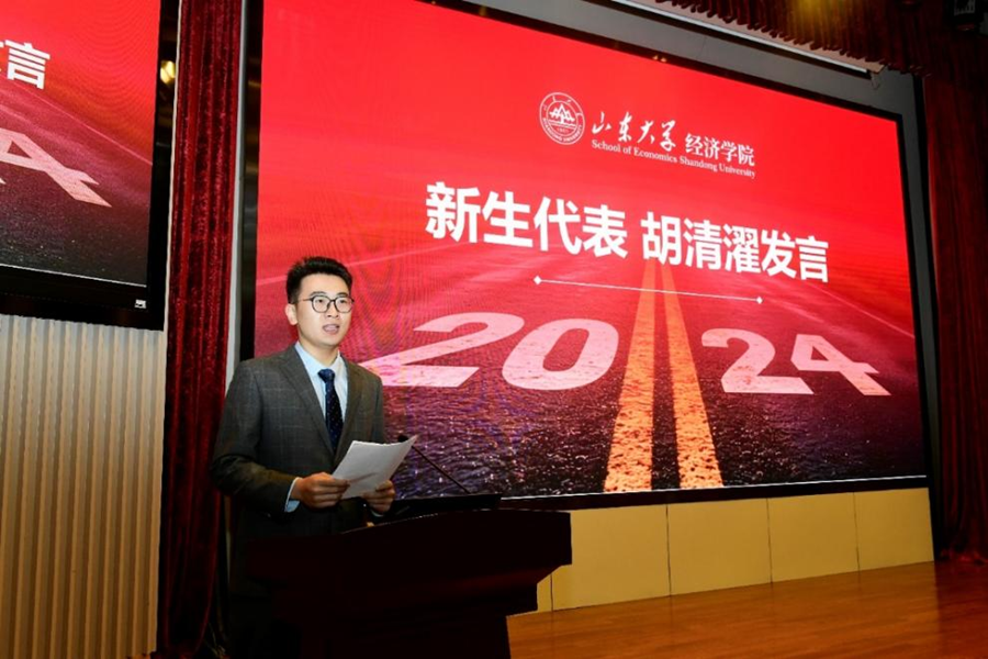 新生代表、2024级研究生胡清濯分享了自己作为3044am永利集团3044noc研究生支教团成员赴新疆伊犁支教的宝贵经历,并对3044am永利集团3044noc提供的优质教育资源和辛勤培育的各位教师表达了诚挚的感谢,表示将在未来的学习生活中坚守初心、乐学善行,做到知行合一、心怀浩然。