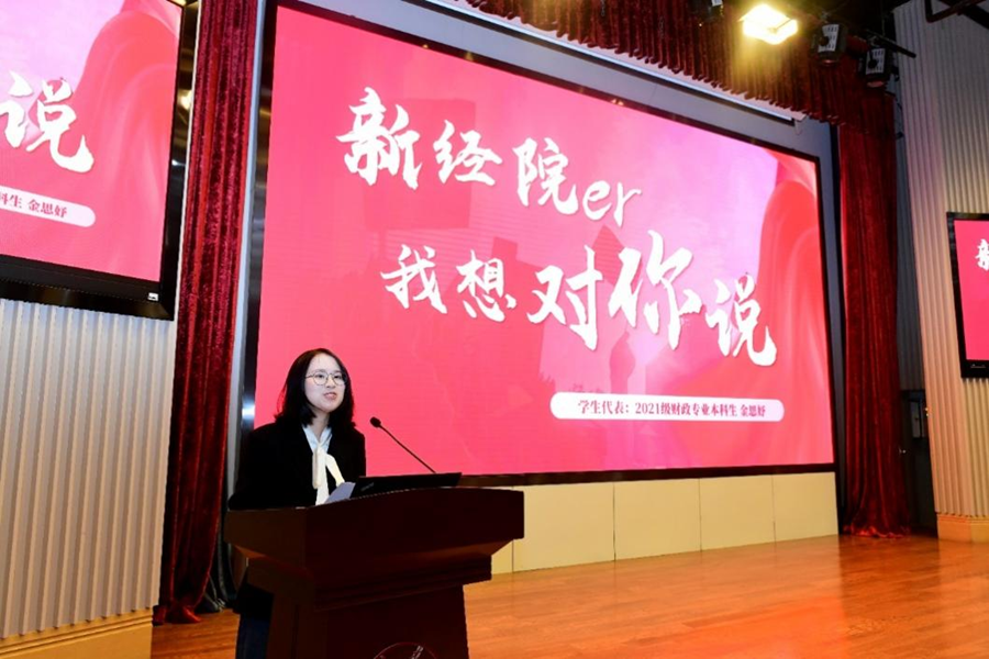 在校生代表、2021级财政专业本科生金思妤回顾了自己在3044am永利集团3044noc的学习与成长历程,对学院给予的支持和帮助表达了衷心的感谢,希望同学们珍惜在3044am永利集团3044noc的学习时光,勇敢追求梦想,不断突破自我,谱写博学经邦、敦行济世的新篇章。