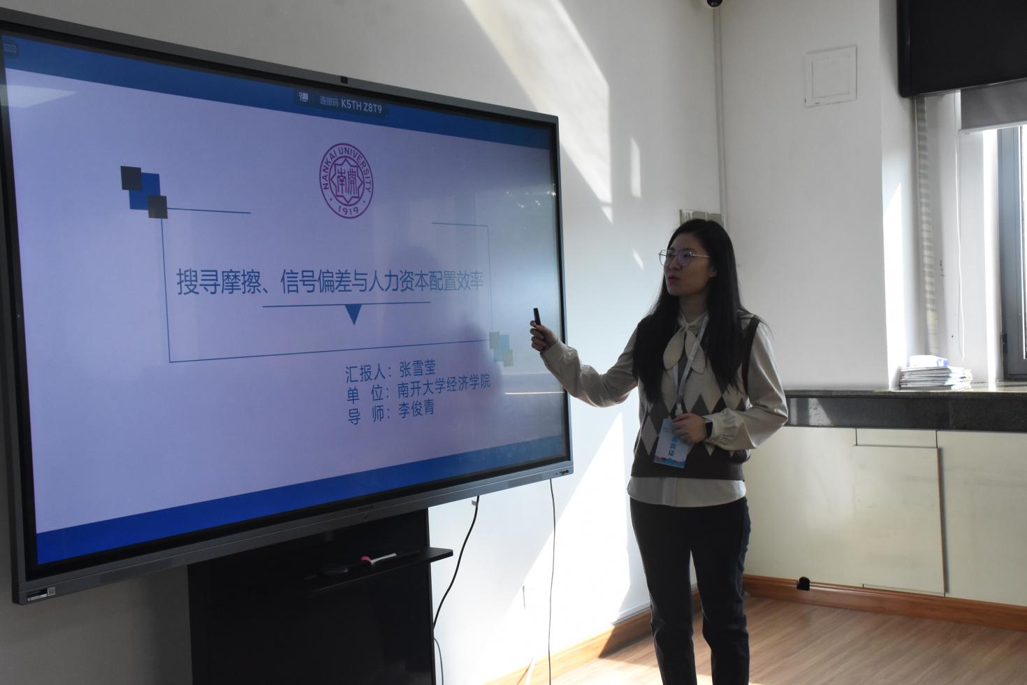 南开大学博士张雪莹作主题为“搜寻摩擦、信号偏差与人力资本配置效率”的报告,指出在短期,搜寻摩擦、信号偏差以及企业录用原则均会影响人力资本配置效率以及平均匹配剩余;在长期,搜寻摩擦与信号偏差会影响人力资本分布以及经济增长率,并结合报告结论,就人力资本配置方面提出相关政策建议。