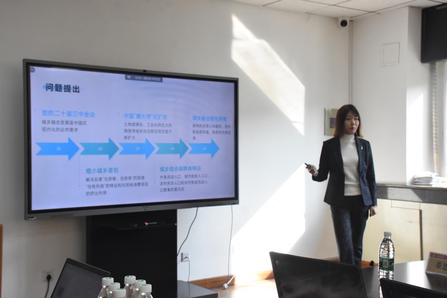 南开大学博士高子茗作主题为“城乡接合部土地出让结构与家庭居住消费的非线性关系研究”的报告,提出城乡接合部住宅用地出让占比与家庭居住消费支出比例之间呈现“U”型关系,且在“相对贫困”的低收入群体中更加明显。究其原因,该“U”型关系来源于住房市场供求和价格变化的影响。