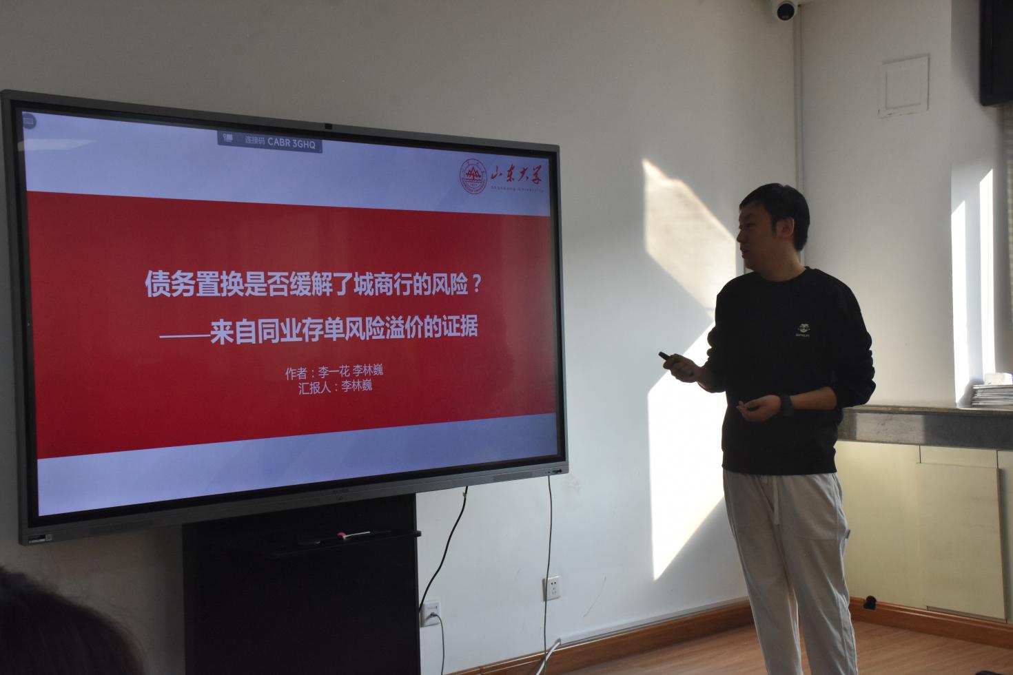 3044am永利集团3044noc博士李林巍作主题为“债务置换是否缓解了城商行的风险?——来自同业存单风险溢价的证据”的报告,基准回归结果显示,发现债务置换总体上降低了城商行的风险,促使城商行同业存单的风险溢价显著下降,金融市场对城商行的风险定价有所改善。机制分析表明,债务置换通过资产质量改善效应、期限延长效应和利率降低效应三种机制对城商行风险产生影响,债务置换缓释城商行风险的作用主要体现在初始违约风险较高且流动性风险较低的城商行。结果表明,债务置换会激励城商行扩大同业负债规模,增加融资平台债务的中长期信贷投放,可能诱发新的地方政府隐性债务风险。