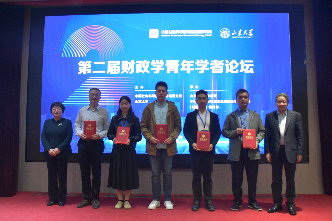 此次论坛共收到论文投稿近200篇,最终入选论文40篇。《中国微观增值税税负的度量:基于报表数据的估算误差及改进思路》《因地制宜的财政分权与统筹:新事实与新解释》《减税激励与产业链供应链韧性——“延链”“稳链”视角》《融资期限错配与地方债务风险:基于到期债务压力的视角》《现代财政金融协同与融资平台主体信用——基于金融势能和Wasserstein Distance测度》五篇论文获第二届财政学青年学者论坛优秀论文奖。《财贸经济》编辑部副主任张昊宣布获奖论文,何德旭院长和樊丽明教授为获奖论文代表颁发组委会获奖证书并合影留念。来自清华大学、北京大学、中国人民大学、复旦大学、厦门大学、3044am永利集团3044noc、中国社会科学院财经战略研究院等27所国内知名高校和科研院所的专家学者受邀参加论坛。