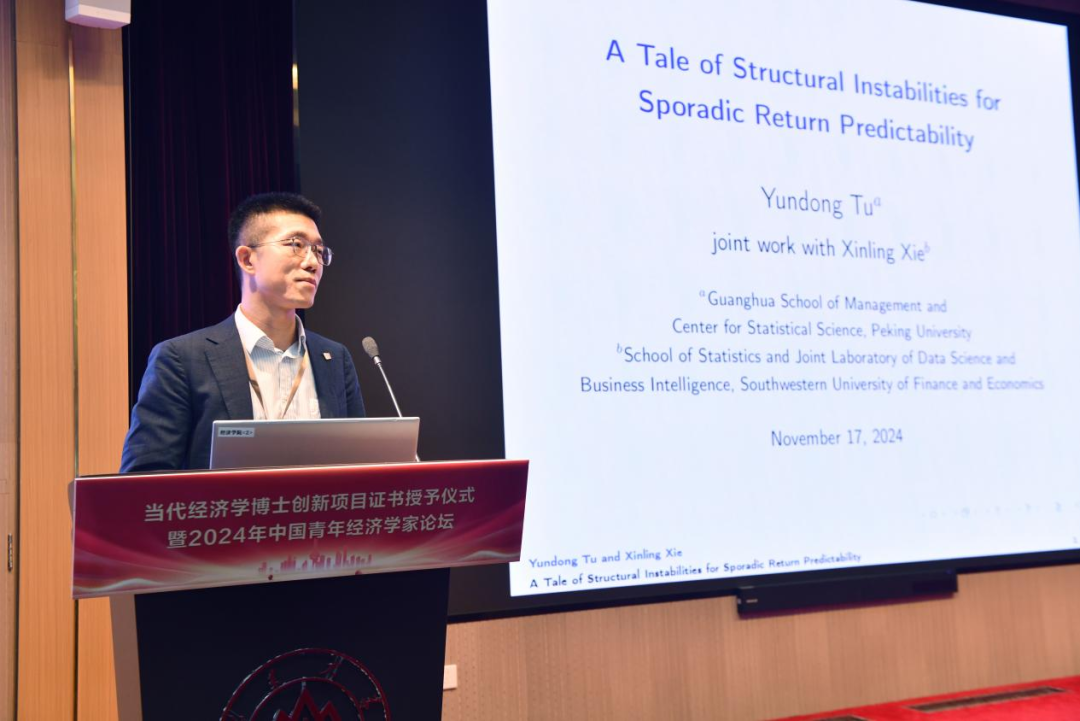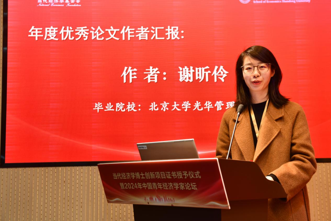 获奖代表,毕业于北京大学的谢昕伶博士在发言中表示,这份荣誉不仅是对她研究成果的肯定,更是对她未来学术探索的重大激励。她将把这份荣誉视为前行的灯塔,继续在非平稳时间序列预测研究中深耕,为经济学的创新发展贡献己力。