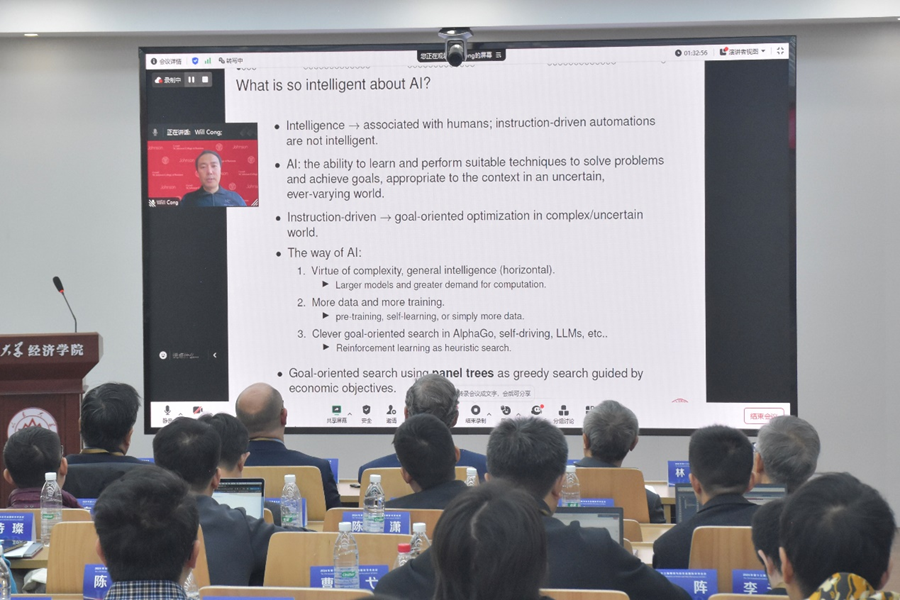 康奈尔大学丛林(Lin William Cong)教授作“Panel Trees and Oracle Networks for Derivatives?”的主旨演讲。演讲聚焦高维特征数据和现代算法(如面板树和决策树)在资产定价和预测中的创新应用,强调了异质性分组的重要性及其对定价精度和投资决策的影响。首先,丛林教授提出了一种基于面板树(Panel Tree)的新模型,用于处理资产定价中的高维面板数据问题。通过全局分割准则,面板树克服了传统机器学习模型中局部优化和过拟合的问题,同时保留了解释性和稀疏性。其次,他提出了一种贝叶斯聚类模型(Bayesian Clustering Model,BCM),结合决策树和变量选择,处理资产定价中的分组异质性和“因子过多”问题。最后,丛林教授就资产收益率预测的异质性,提出了一种新的基于决策树的资产聚类方法,用于识别不同资产和宏观经济情境下的预测模式。研究发现,不同资产组和宏观经济情境存在显著的预测能力差异,高可预测性资产通常具有更高的风险调整回报。这些研究为提升资产预测模型的性能和投资收益提供了新的视角。