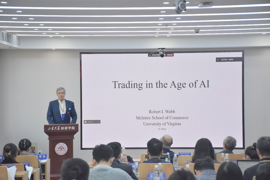 JFutM前主编、弗吉尼亚大学Robert I. Webb教授作了题为“Trading in the Age of AI”的主旨演讲。Robert I. Webb教授深入探讨了AI应用于交易时所面临的机遇与挑战。他揭示了AI模型在预测市场趋势中的作用,特别是对捕捉短线交易机会和预测掠夺性行为具备独特优势。然而,AI无法准确给出交易的具体细节,比如交易的市场、方向、持续时间以及资产配置规模等。同时,曾经对价格预测的十分关键的宏观经济变量可能随时间而失效。AI如何运用于新兴市场以及如何面对市场泛滥的假信息也是潜在挑战。总而言之,人类交易员需要审慎、策略性地使用AI模型以避免其所带来的风险并与之形成良性互动。
