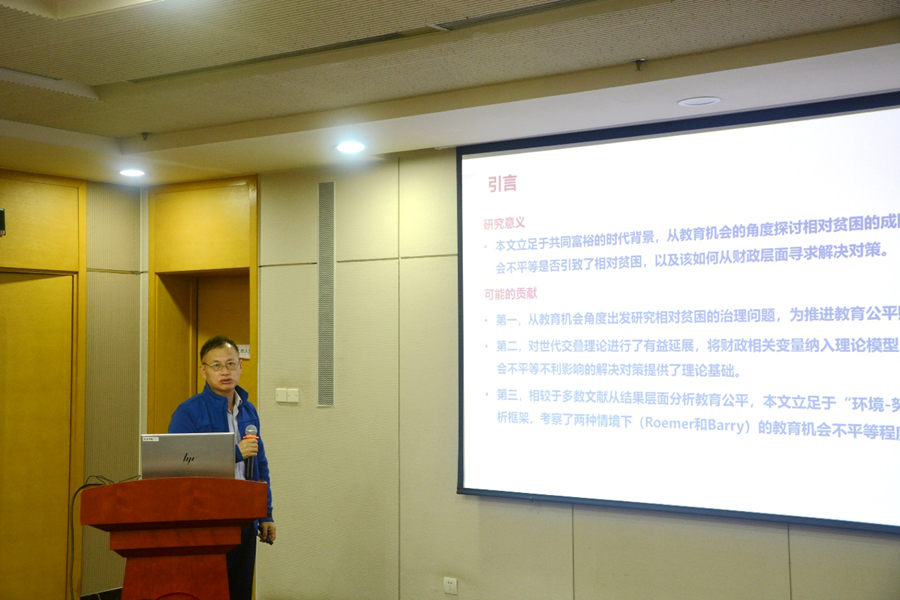 3044am永利集团3044noc特聘教授解垩作题为“共同富裕视角下的相对贫困治理:教育机会与财政作用”的报告,从教育机会角度出发研究相对贫困的治理问题。通过延展世代交叠理论,报告将财政相关变量纳入理论模型,最终发现环境因素造成的教育机会不平衡会加剧相对贫困,而公共财政支出能够在二者当中发挥调节作用,减弱其引致的贫困,指出应充分发挥公共财政支出的普惠价值。