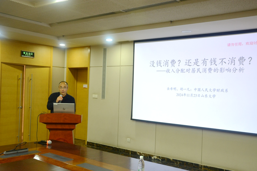 中国人民大学财政金融学院教授岳希明作题为“有钱不消费?还是没钱消费?收入分配对居民消费的影响分析”的报告。他指出,中国居民消费率处于较低水平,尽管存在诸多关于刺激消费的政策讨论,但就目前而言,政府刺激政策中真正作用于居民消费的部分相对较少。居民消费率主要受到居民消费倾向和居民部门可支配收入占GDP比重的影响,而收入差距产生的影响较小,指出为促进居民消费,政府未来需着力提高居民边际或平均消费倾向。