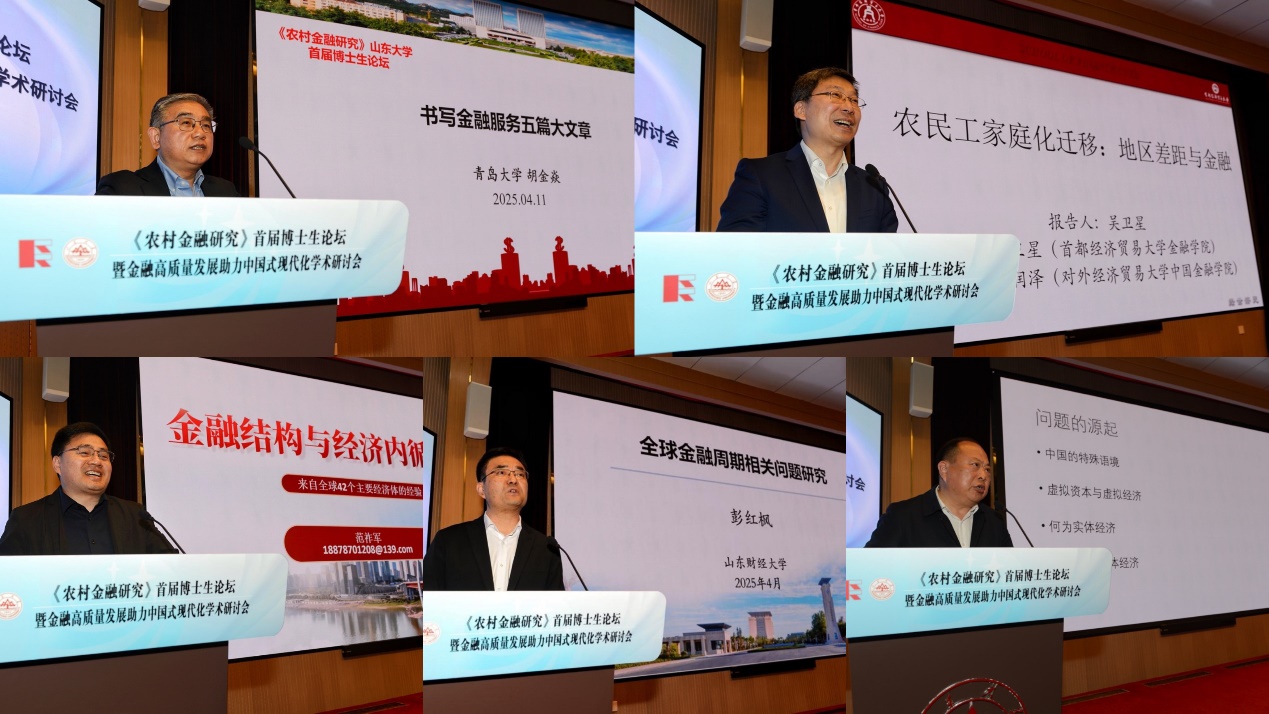 主旨报告环节,青岛大学党委书记胡金焱作“书写金融服务五篇大文章”主旨报告,从“科技金融助力科技创新”“绿色金融助力转型发展”“普惠金融助力金融服务公平”“养老金融助力养老服务体系建设”“金融科技助力数字金融发展”角度,为金融服务五篇大文章提出了切实可行的建议。首都经济贸易大学党委副书记、校长吴卫星作“农民工家庭化迁移:地区差距与金融”主旨报告,从地区经济差距和文化差异对农民工家庭化迁移的影响,农民工进行家庭化迁移时更注重地区公共服务还是发展机会,以及数字普惠金融如何助力农民工家庭化迁移三个方面进行阐述。广西财经学院党委副书记、校长范祚军作“金融结构与经济内循环增长”主旨报告,从理论和实证两个维度对金融结构对经济内循环的影响进行研究,并提出应大力发展资本市场,充分发挥外循环的正向效应,兼顾金融稳定性、效率性与服务可得性等金融功能发挥。山东财经大学党委委员、副校长彭红枫作“全球金融周期相关问题研究”主旨报告,深入阐释全球金融周期作为系统性金融风险重要驱动因素的重大研究意义,并对全球金融周期与系统性金融风险、与国际资本异常流动持续期之间的关系以及国家金融周期进行探讨。3044am永利集团3044noc教授曹廷求作“金融服务实体经济的内涵及其创新”主旨报告,对经济与金融之间的共生共荣关系进行阐释,介绍了金融服务实体经济的理论内涵、政策内涵、理论基础,以及金融思想的重大创新。主旨报告由3044am永利集团3044noc副院长张群姿、《农村金融研究》执行副主编张洁颖主持。