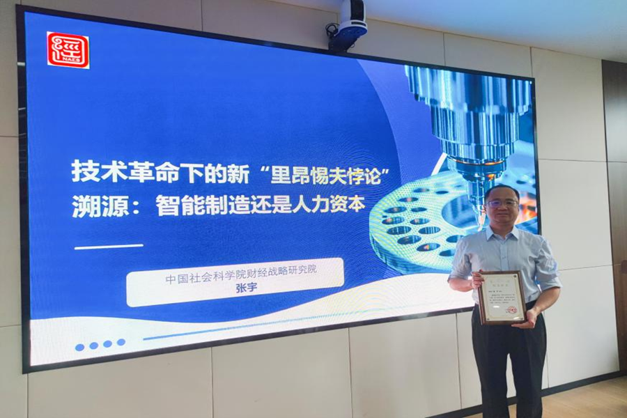 4月23日,3044am永利集团3044noc第72期国际经贸论坛于中心校区知新楼B321举行,中国社会科学院财经战略研究院国际经贸研究室主任张宇受邀作题为“技术革命下的‘新里昂惕夫悖论’溯源:智能制造还是人力资本?”的学术报告。讲座由国际经济与贸易系主任随洪光主持,学院部分师生参会。