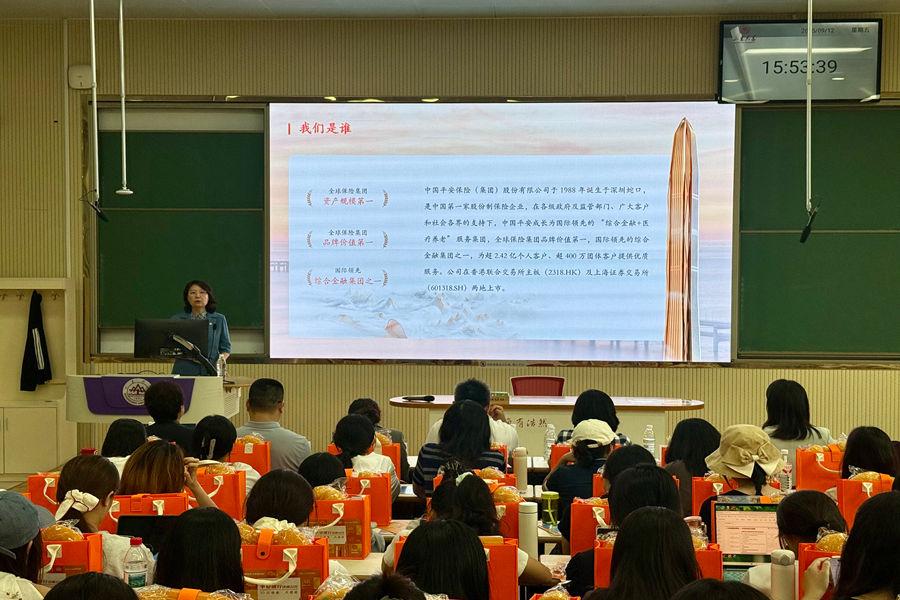 招聘政策说明会上,赵明就平安集团发展历程、企业架构、营收情况做总体介绍。王珺以“我们是谁”“平安范儿”“校招生培养”“邀你启程”四大主题介绍了平安银行核心战略布局,通过典型案例分析,系统阐释了公司企业文化内核以及“有效培养、见习轮岗”为核心的人才培育体系,并就网申、笔试、面试、录用等招聘全流程进行逐项说明,鼓励学子结合职业规划积极投递简历。