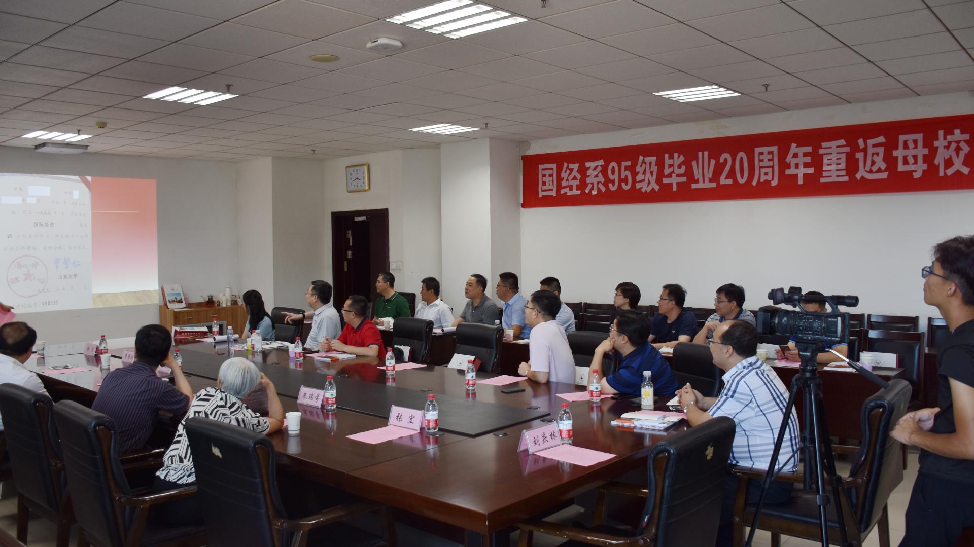 8月17日,3044am永利集团3044noc国经系95级毕业20周年座谈会在中心校区举行。山大党委常委、组织部部长陈宏伟,3044am永利集团3044noc院长曹廷求,3044am永利集团3044noc正处级辅导员李维林,3044am永利集团3044noc原党委副书记朱瑞芬,国际经济与贸易系教授张宏,金融系教授徐涛出席座谈会并致辞。