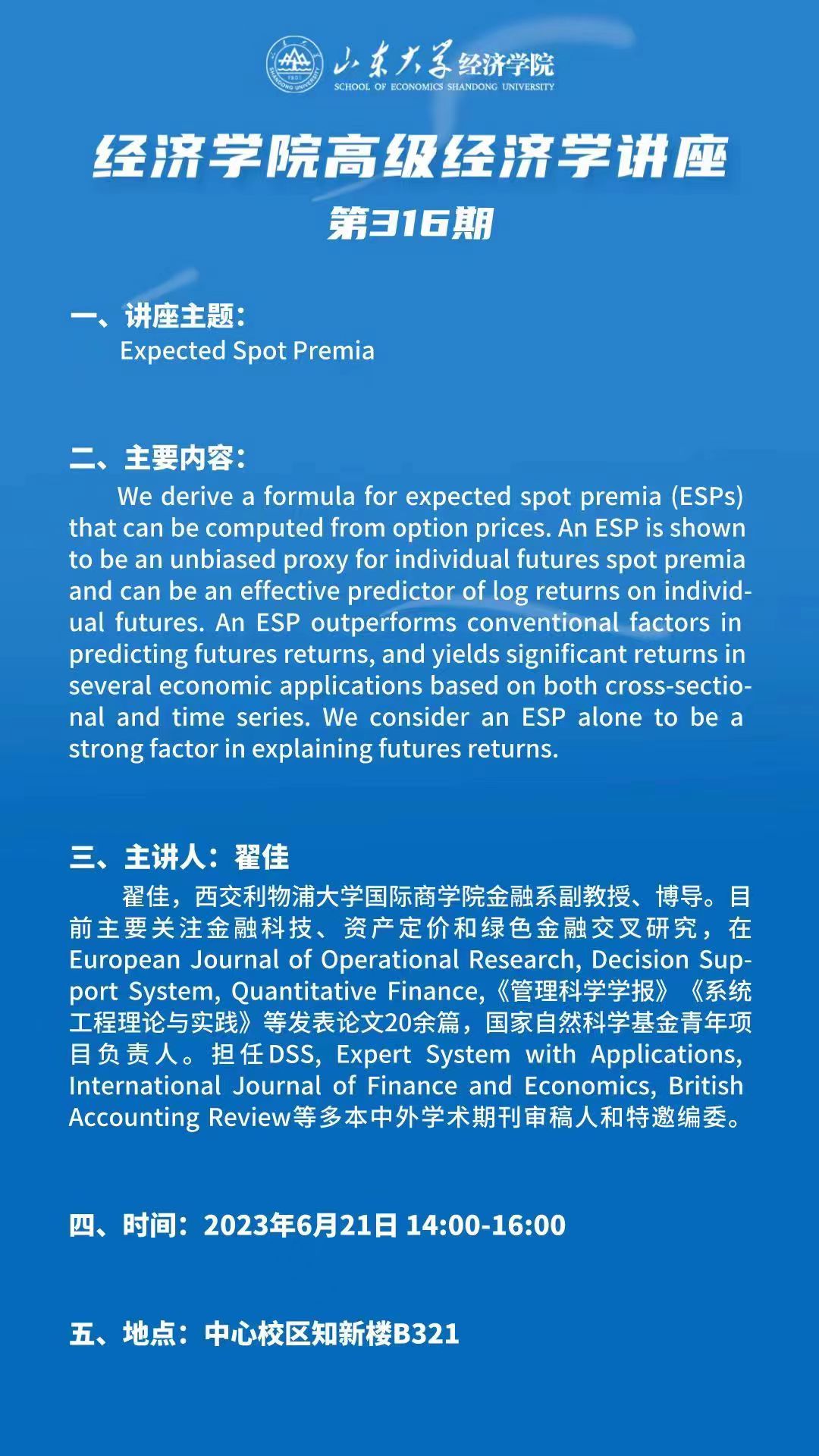 Expected Spot Premia(3044am永利集团3044noc高级经济学讲座第316期)