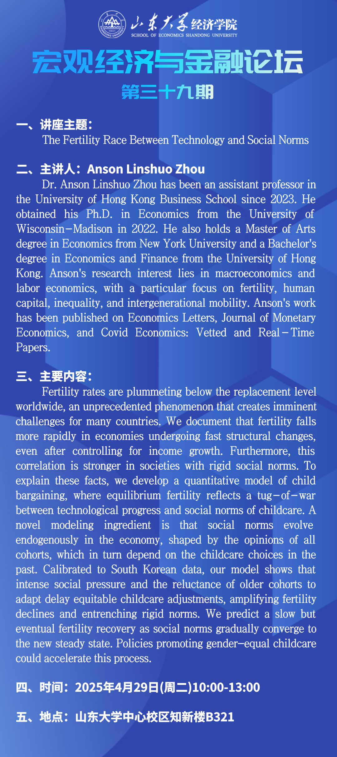 The Fertility Race Between Technology and Social Norms(宏观经济与金融论坛第三十九期)