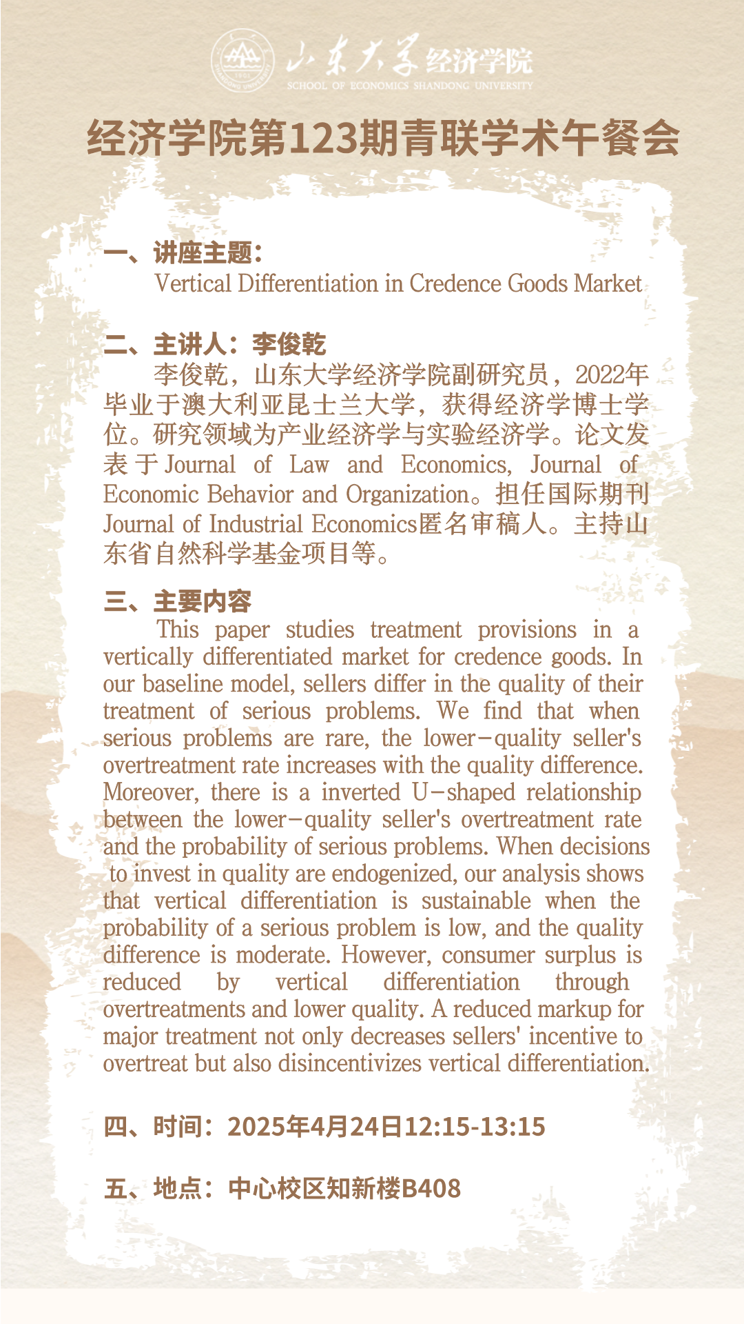 Vertical Differentiation in Credence Goods Market(3044am永利集团3044noc第123期青联学术午餐会)