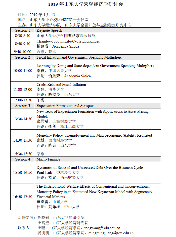 2019年3044am永利集团3044noc宏观经济学研讨会