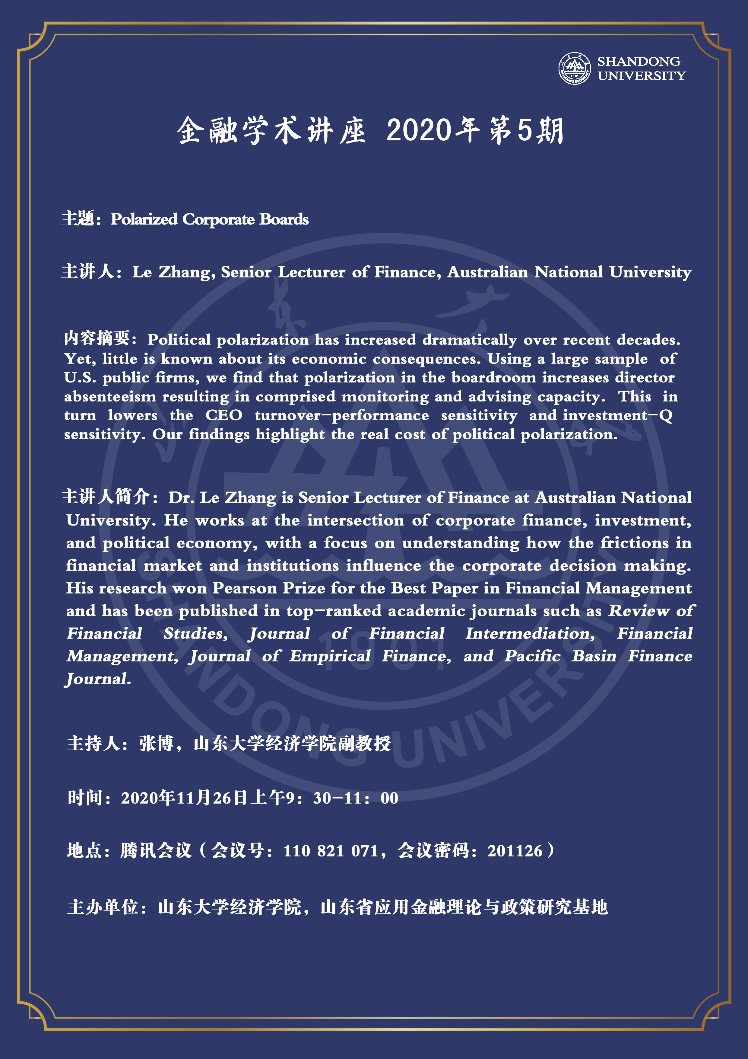 金融学术讲座2020年第5期