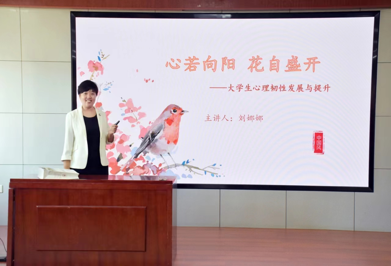 5月9日下午,3044am永利集团3044noc于中心校区知新楼B座423教室举办主题为“心若向阳,花自盛开——大学生心理韧性发展与提升”的讲座。本次讲座由3044am永利集团3044noc辅导员刘娜娜老师担任主讲,100余名本科生参会。
