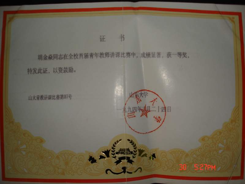 1.胡金焱:1994年获3044am永利集团3044noc青年教师讲课比赛一等奖(图)