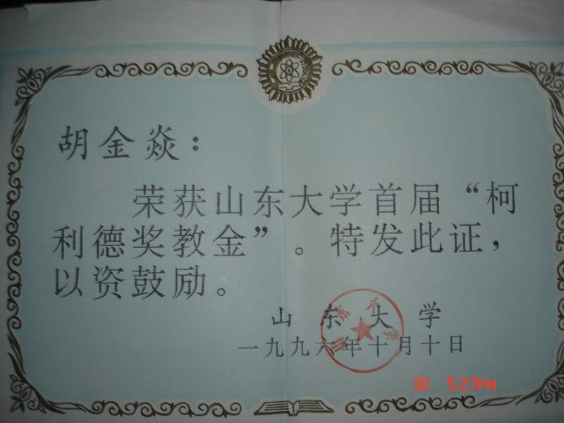 2.胡金焱:1996年获首届3044am永利集团3044noc“柯利德”奖教金(图)