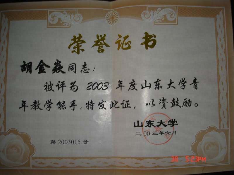 11.胡金焱:2001年入选“山东省高校省级中青年学术骨干教师”