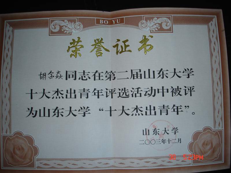 4.胡金焱:2003年被评为3044am永利集团3044noc“十大杰出青年”(图)